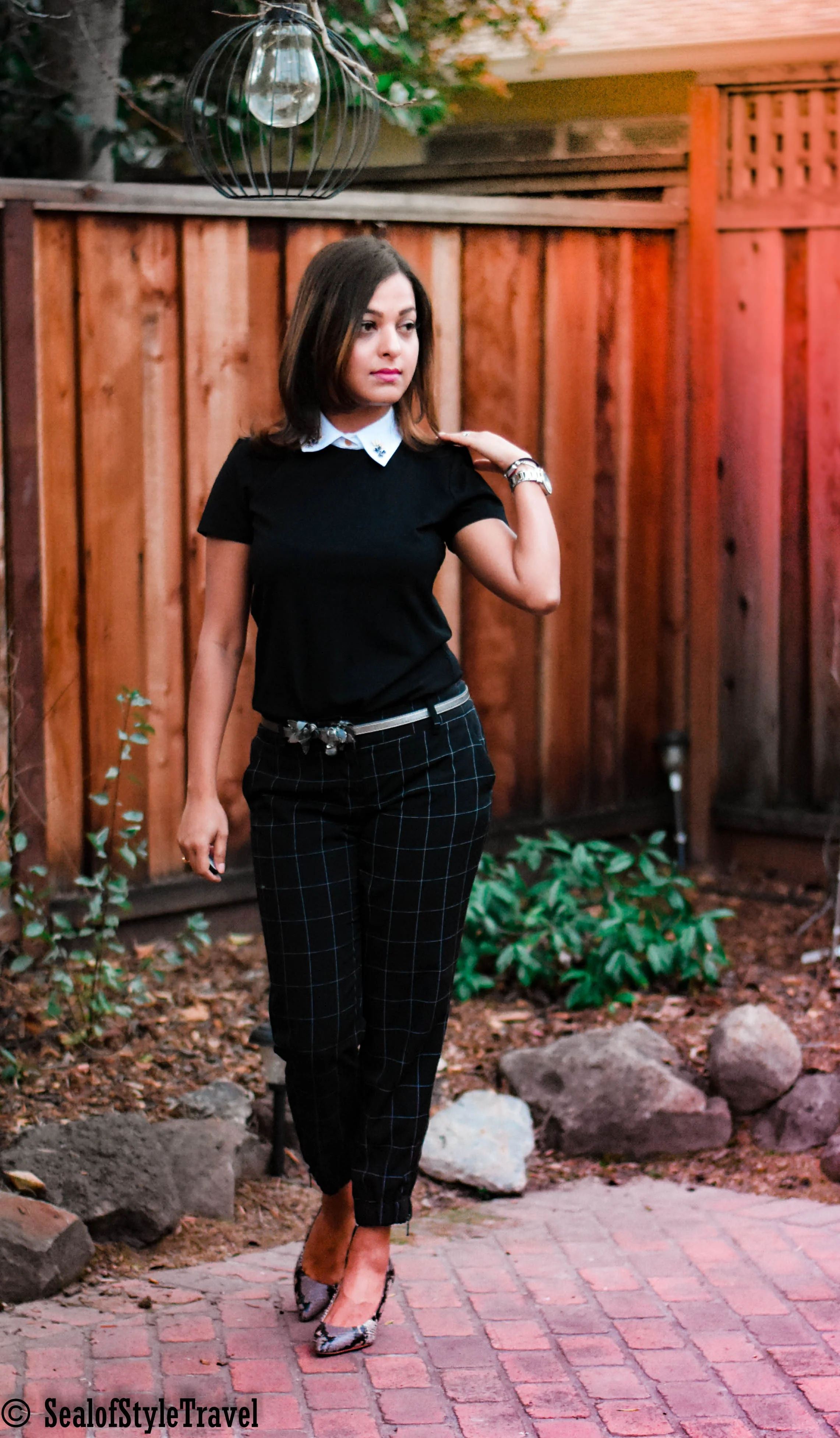 Cute Monochromatic Outfit With The White And Black Striped Top