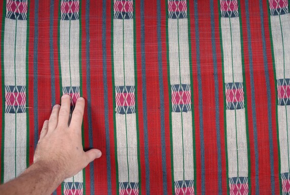 Naga Tapestry Red Beige Grey Tribal Ethnic Blanket Tribal Home Decor Handwoven Cotton Bed Throw Striped Boho Tapestry India 20 Ms2